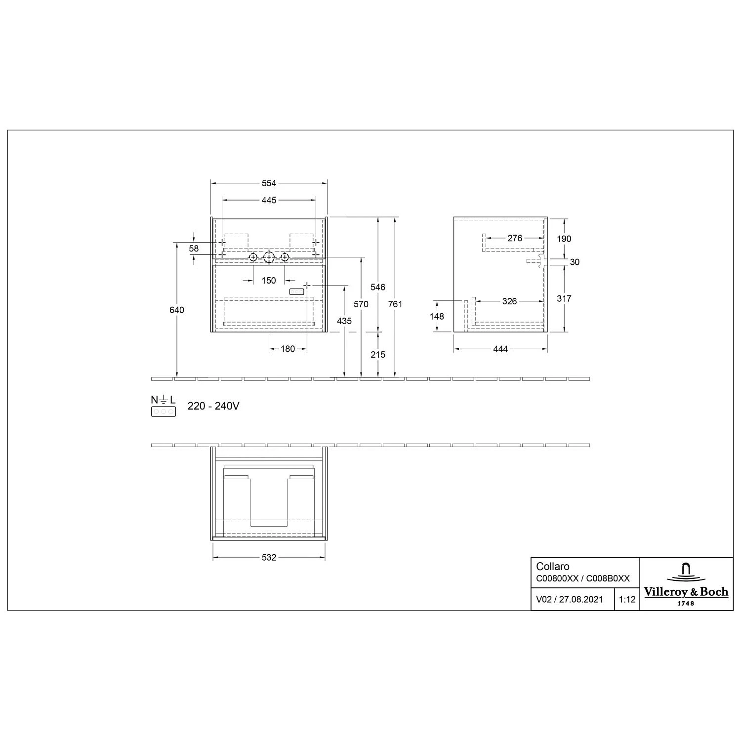 Villeroy & Boch Collaro Waschtischunterschrank 55,4 x 54,6 cm mit 2 Auszügen