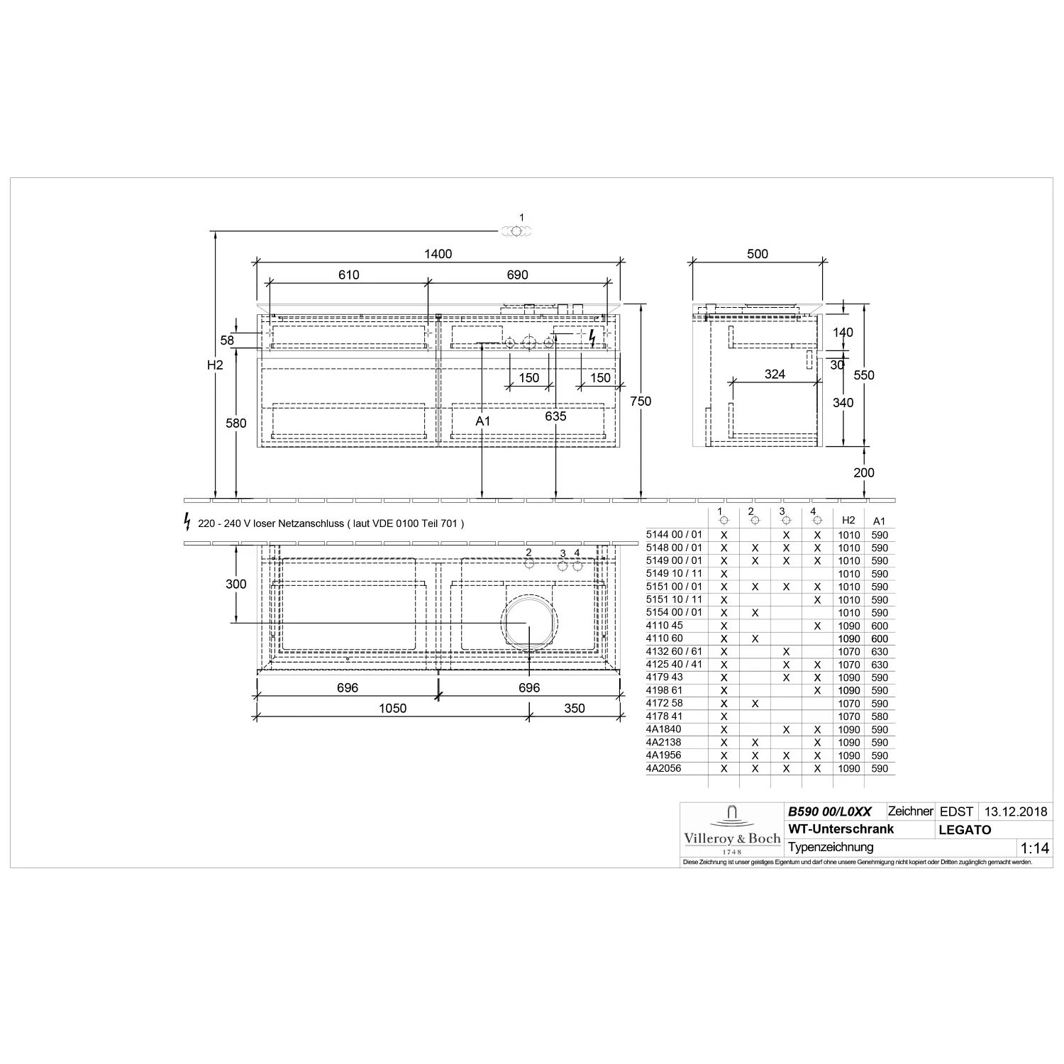 Villeroy & Boch Legato Waschtischunterschrank 140 cm mit 4 Auszügen