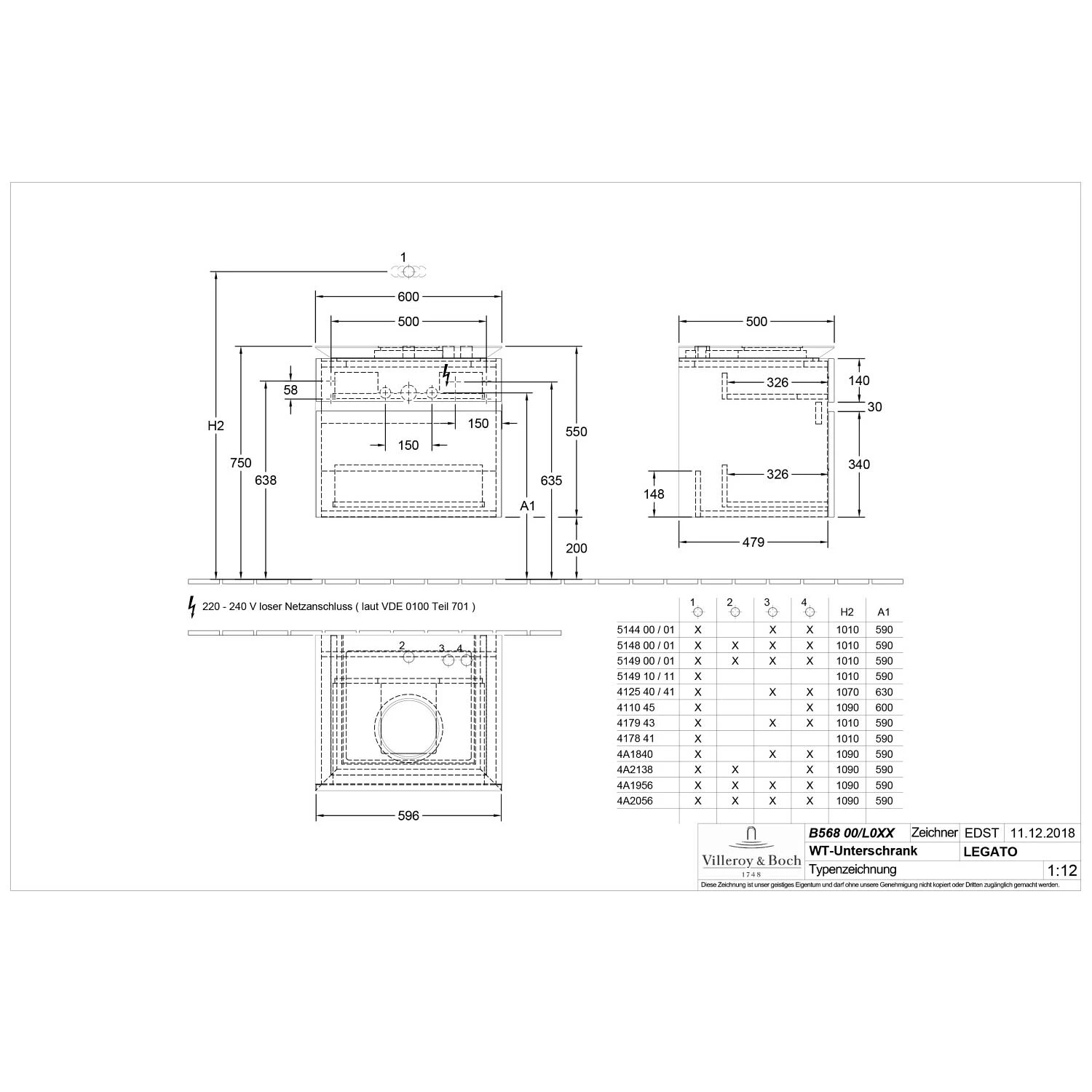 Villeroy & Boch Legato Waschtischunterschrank 60 cm mit 2 Auszügen