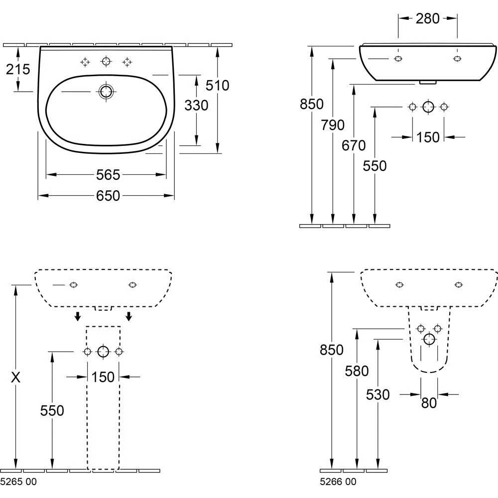 Villeroy & Boch O.novo Waschtisch 65 x 51 cm mit Überlauf, 1 Hahnloch