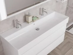 - Waschtisch für 1-Loch- oder 3-Loch-Armaturen geeignet, mittleres Hahnloch durchgestochen