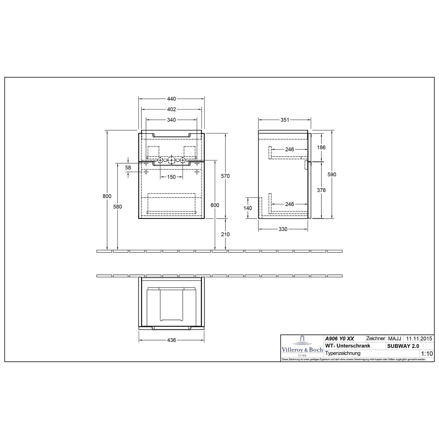 Villeroy & Boch Subway 2.0 Waschtischunterschrank XXL 44 cm, Griffe silberfarbig matt, 2 Auszüge