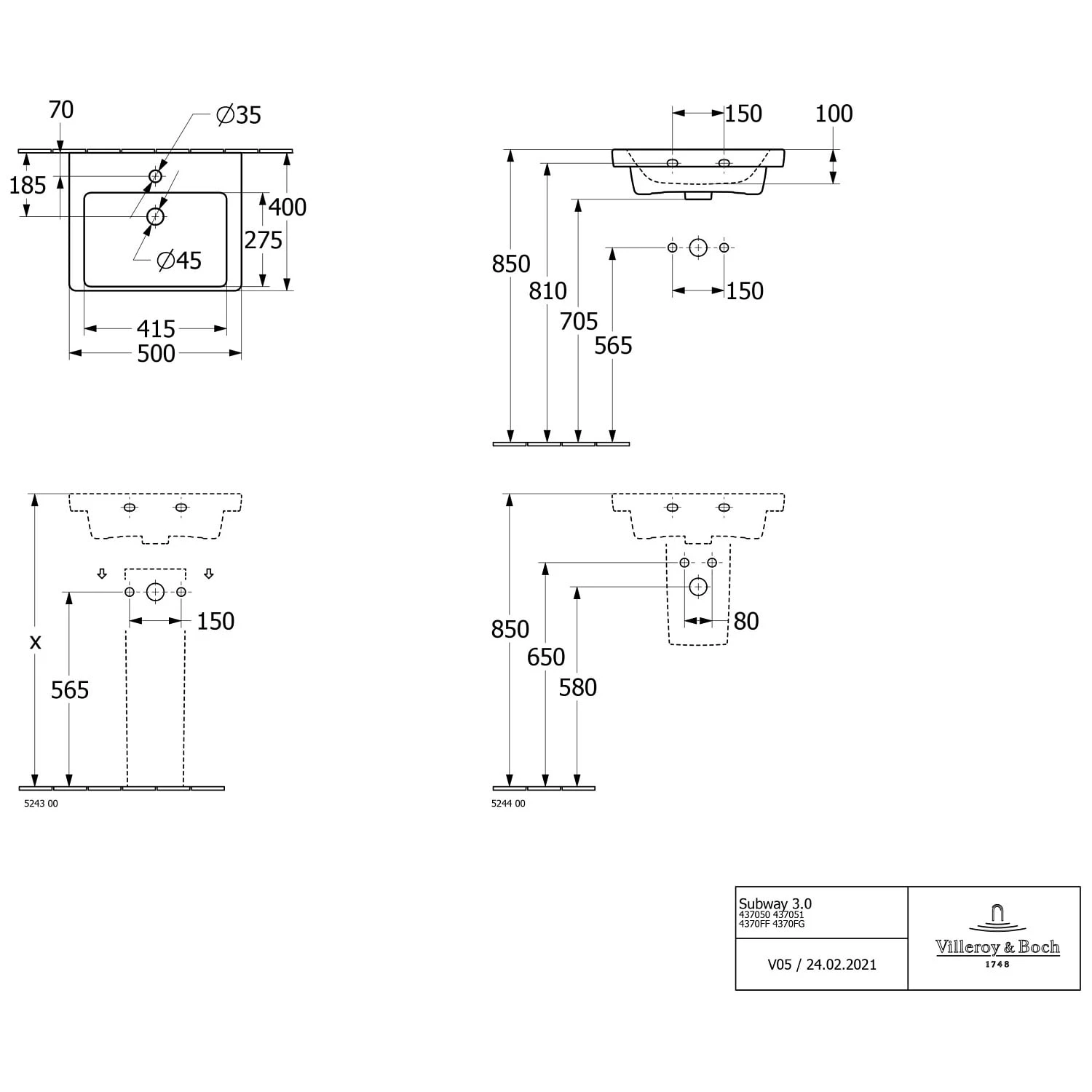 Villeroy & Boch Subway 3.0 Badmöbel-Set 50 cm mit Beleuchtung, 1 Auszug