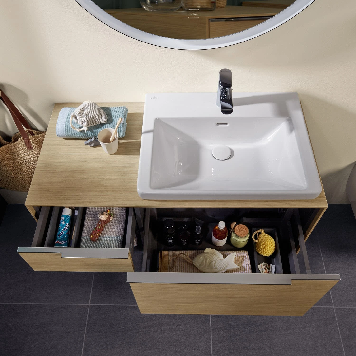 - inkl. zwei integrierter kleiner Accessory-Schalen für Pflege- und Hygieneartikel
