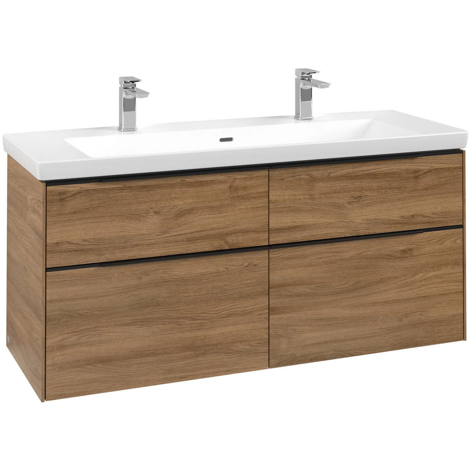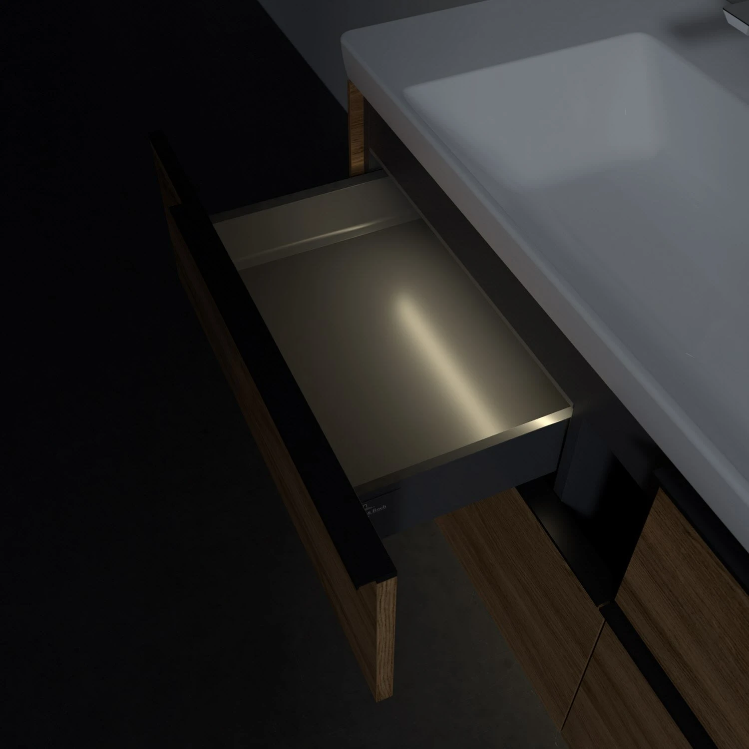 Villeroy & Boch Subway 3.0 Waschtischunterschrank 127,2 cm, 4 Auszüge, Griffe volcano black, mit LED-Licht