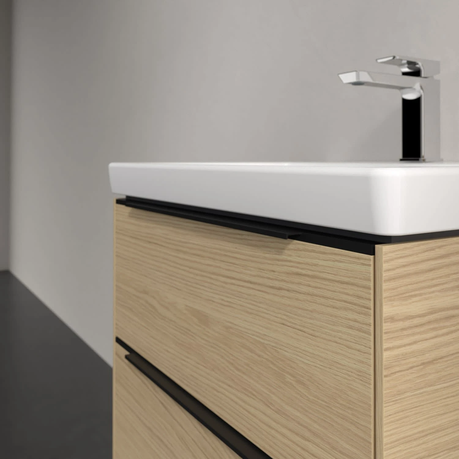 Villeroy & Boch Subway 3.0 Waschtischunterschrank 57,2 cm, 2 Auszüge, Griffe volcano black, ohne LED-Licht