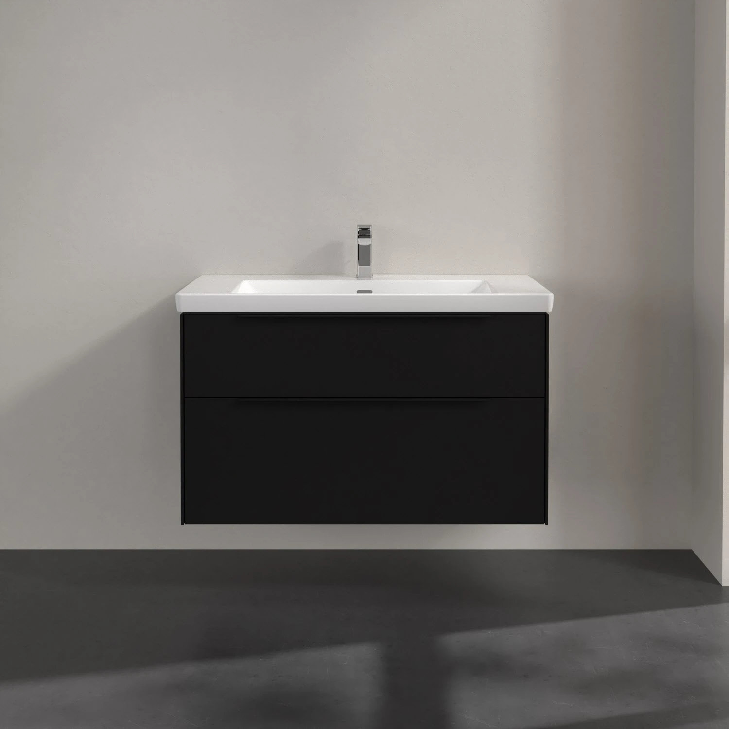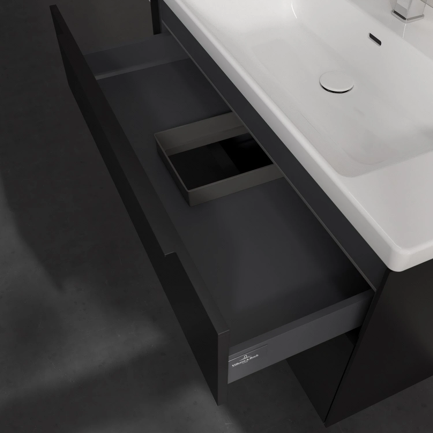 Villeroy & Boch Subway 3.0 Waschtischunterschrank 97,3 cm, 2 Auszüge, Griffe volcano black, mit LED-Licht