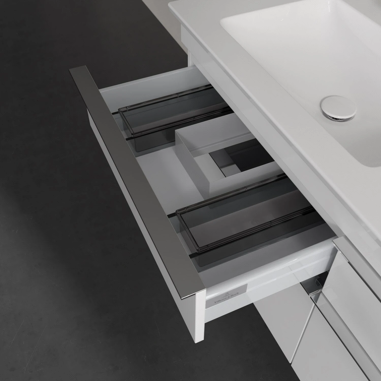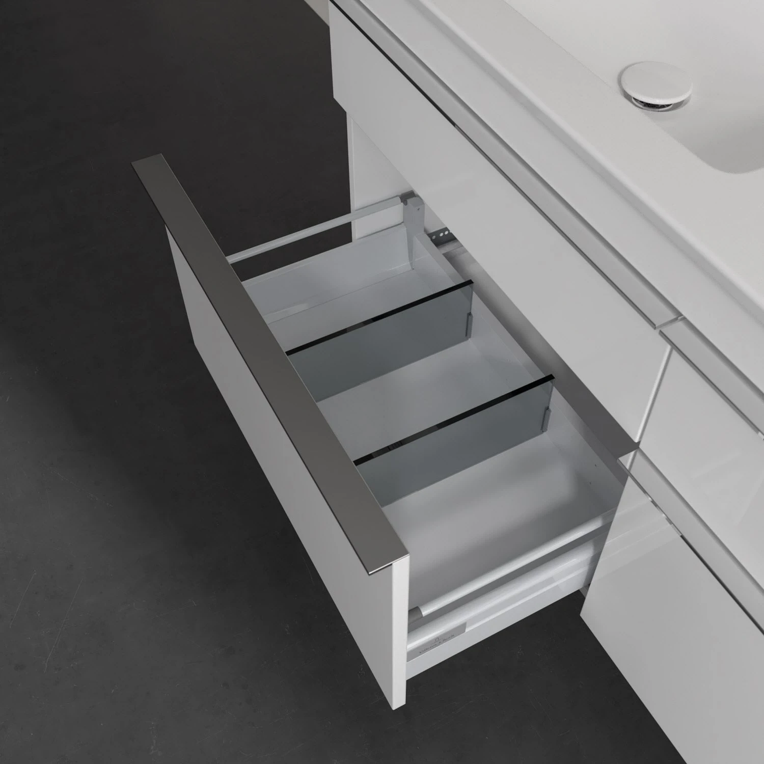 - Die praktische Innenaufteilung von Villeroy & Boch Badmöbeln sorgt für Ordnung und Übersichtlichkeit im Badezimmer. Dank variabler Elemente wie Accessory Boxen unterschiedlicher Größen oder verstellbarer Glasabtrennungen finden sich häufig genutzte Badutensilien direkt auf den ersten Blick.