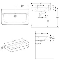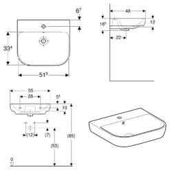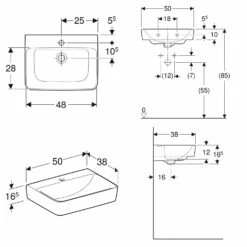Geberit Renova Compact Handwaschbecken 45 Cm Verkürzte Ablage, Mit Ablagefläche Und Hahnloch Links